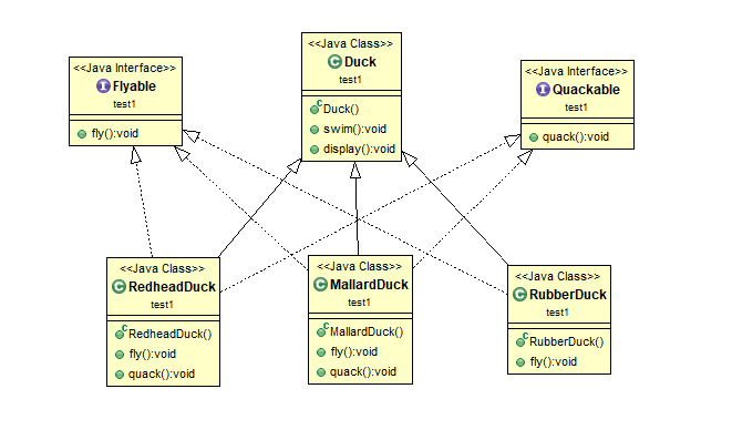 *여기서 중요한 점은 quack() , fly() 를 클래스에 알맞게 실행 시킬수 있어야 한다.