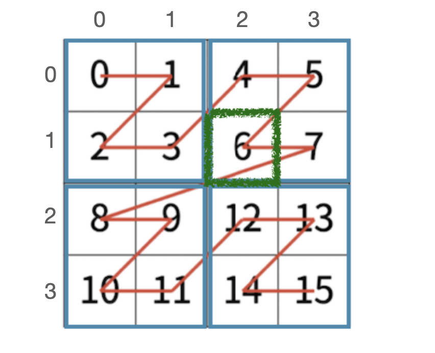 4X4 배열을 보면, 가장 작은 단위인 2X2 배열이 총 4개가 연속된다는 것을 알 수 있다.