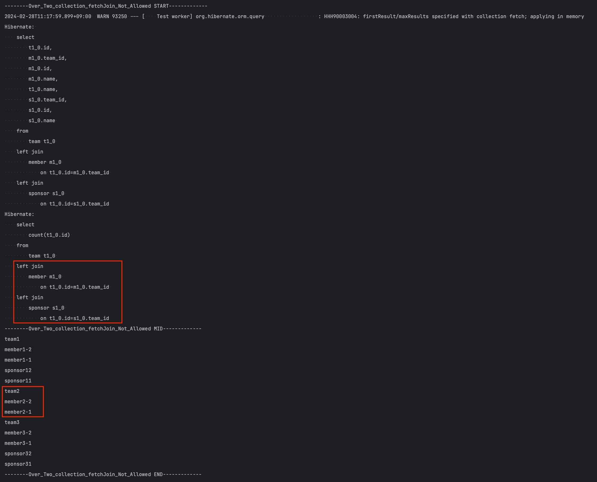 List<Team> result = teamRepository.findTeamsFetchJoinTwoCollection(PageRequest.of(0, 3)).getContent();