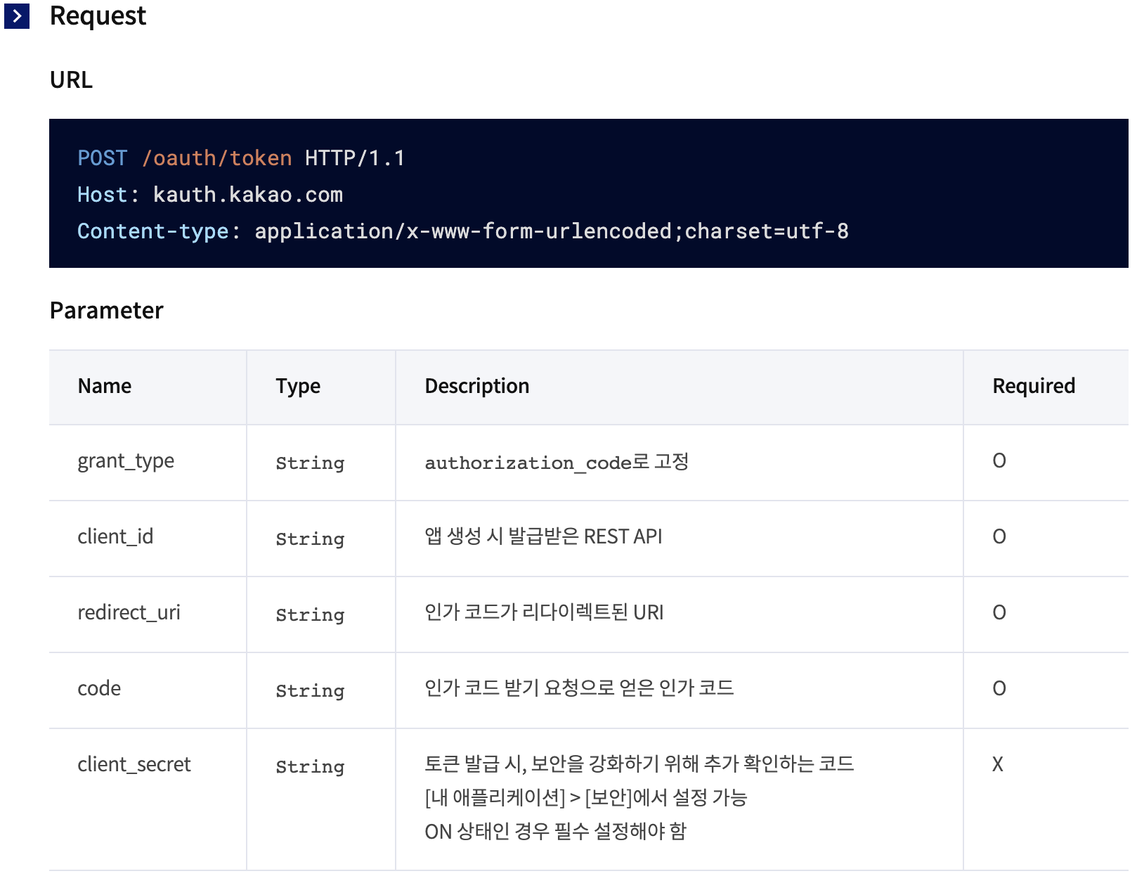 {REST_API_KEY} 부분에는 앱 생성 시 발급받은 REST API 키를 넣어주면 되고, 나머지도 아래 표를 보고 알맞게 넣어주면 된다.